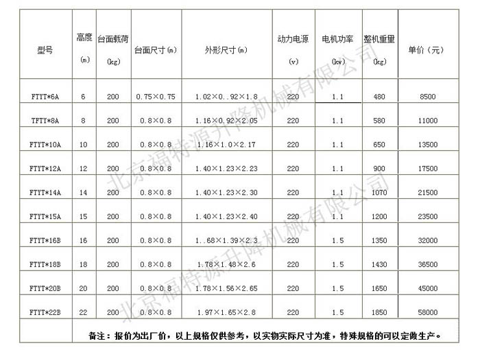 北京福特源升降機(jī)械有限公司